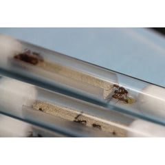 The purpose of the Genesis is to counter some of the pitfalls with using test tubes as a primary method for raising ants. Flooding issues are greatly mitigated when using the Genesis as our Type III absorbent material slides over the rounded glass floor of the test tube and replaces it with a flat, absorbent material for the ants to rest on (see photos). Another benefit to the Genesis is that ants no longer will be forced to place brood upon the cool surface of the glass tube.