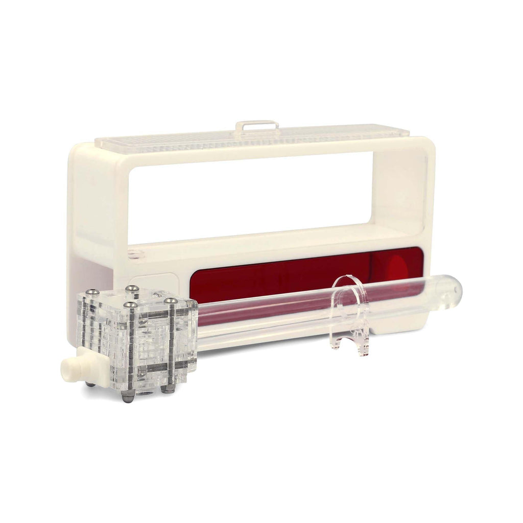 The AntHome has a built in red acrylic viewing window and houses a test tube that connects to an integrated arena with clear window and vented clear lid.
