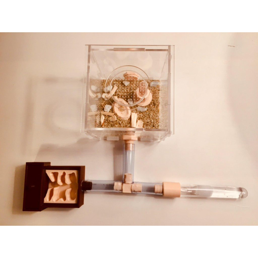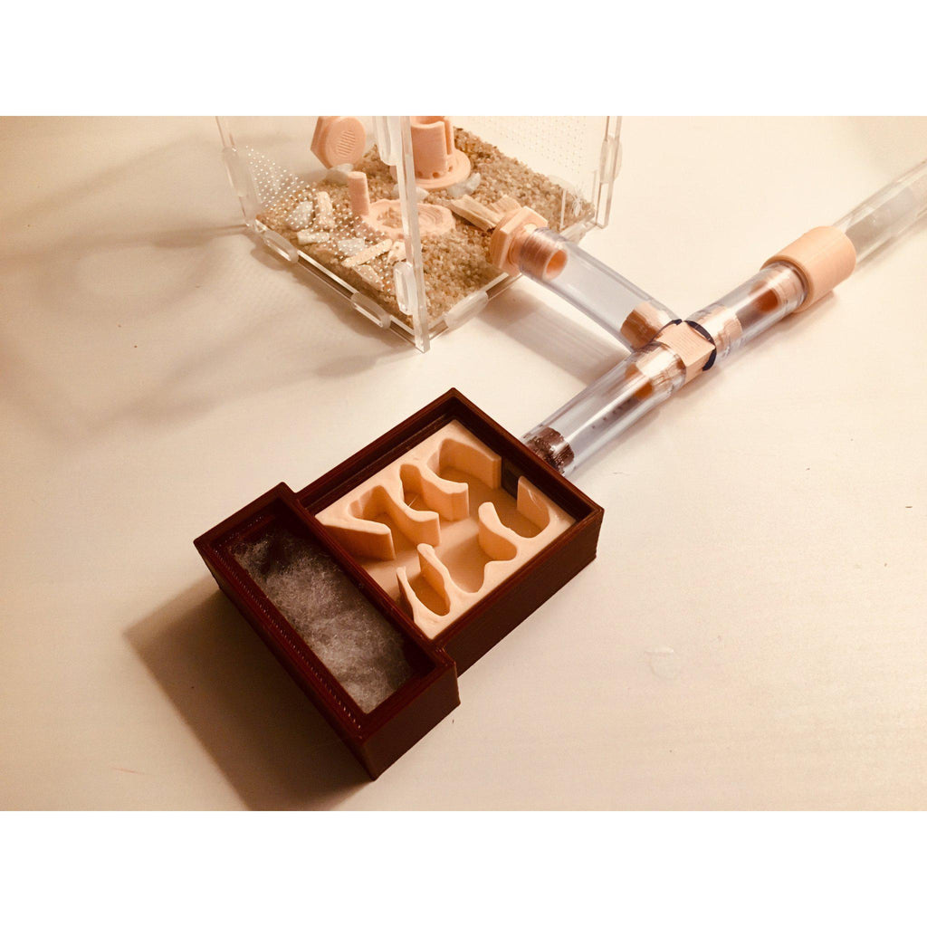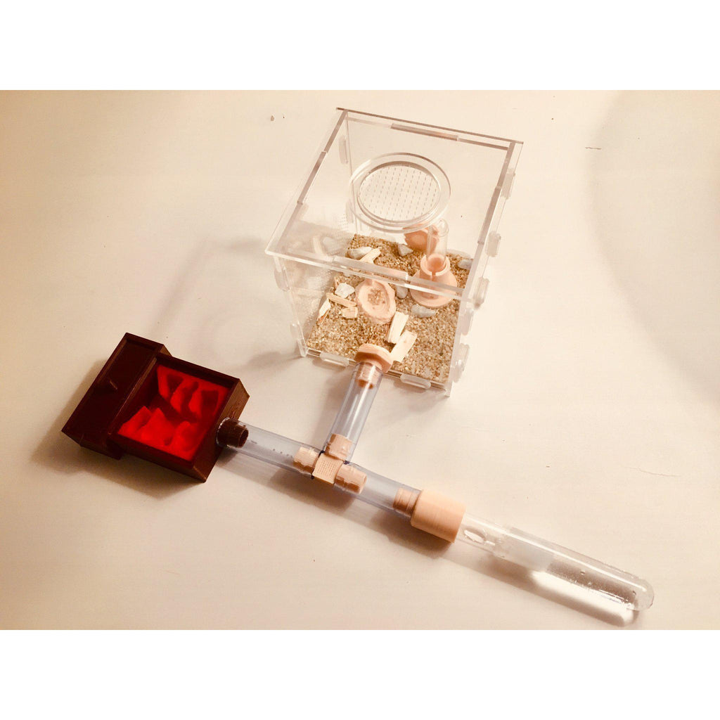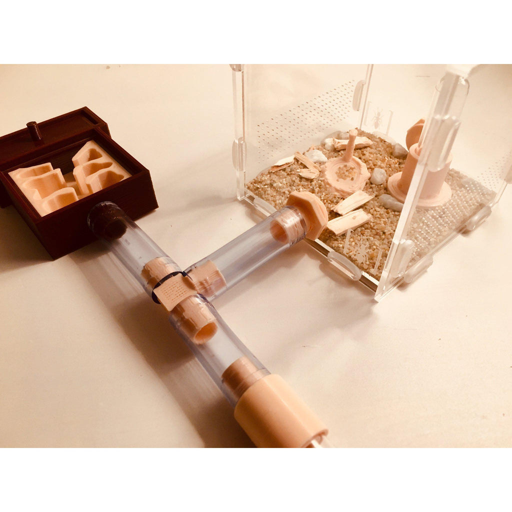 This kit is easily expandable with the growing size of the ant colony. Simply dock new nests/arenas through the supplied connection tube.