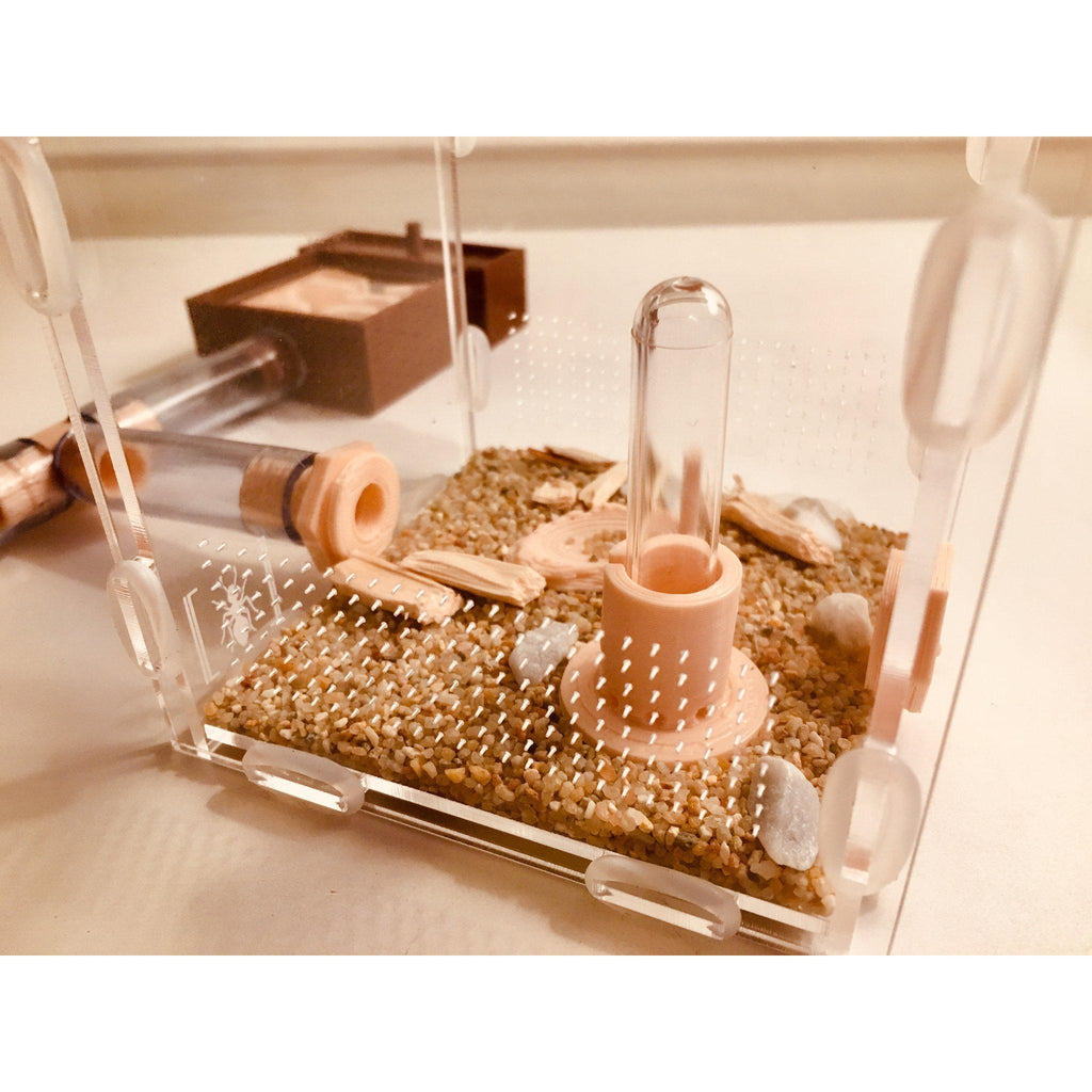 - 1x ant farm (nest). Size: 2x2.5x1 in (5x6x2 cm)