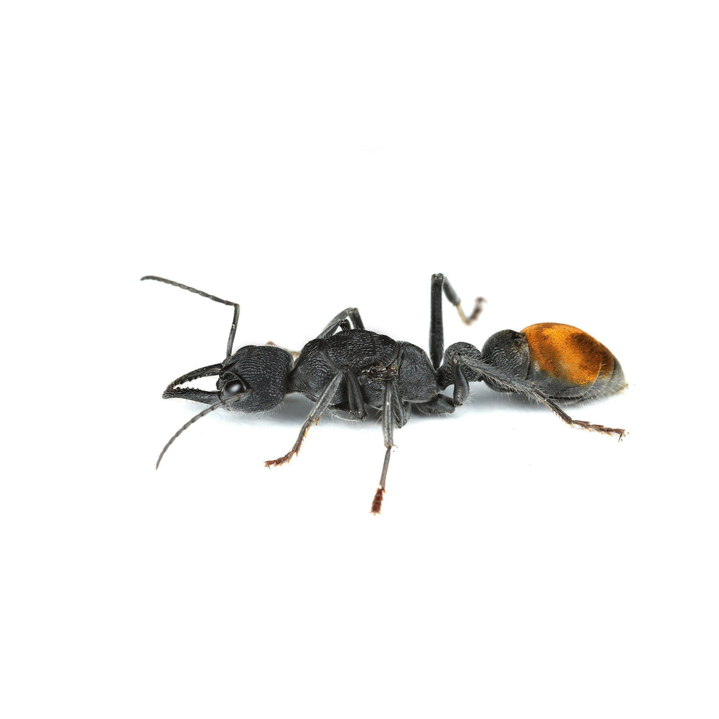 Featuring a fluffy golden tail this Myrmecia species is similar in appearance to other smaller bull ants.